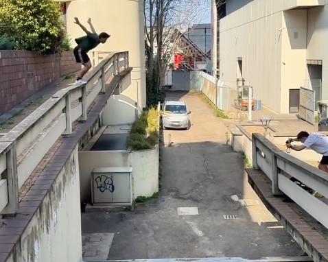 7/19/2025 - Choukaye leaped from about 5th floor height to a narrow concrete wall, and nearly faced the gravity monster. This was about as close of a call as they come. Would Manu_Na even attempt this one?