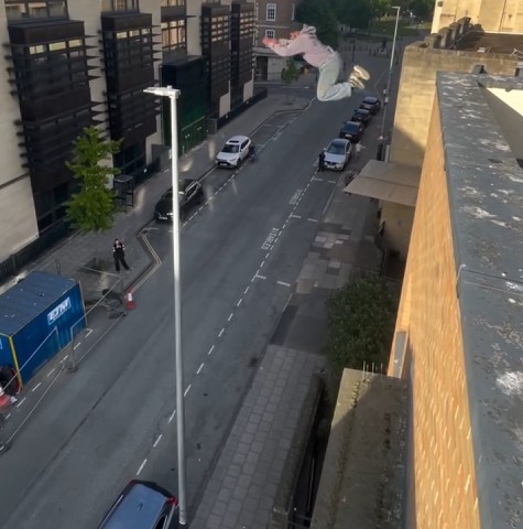 11/3/2024 - We almost hestitate to report on these for fear of encouraging more dangerous stunts. Nevertheless... from 7 floors up!